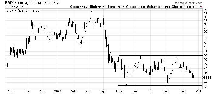 I keep thinking Bristol Myers BMY is working on a base, but it keeps doing more work than anything else. Once again, my concern will be what it does as we head into year-end. Do we get tax loss selling?