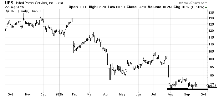 I had liked United Parcel Service UPS back in April, thinking it would fill that gap down from earlier in the month. It took three months to do it, and then instead of pulling back and rallying again, it died. Now it is trying once again to hold. It looks oversold enough to rally, but once again, here is a candidate for tax loss selling as we get further into year-end, so I’d call it just a trade for now.