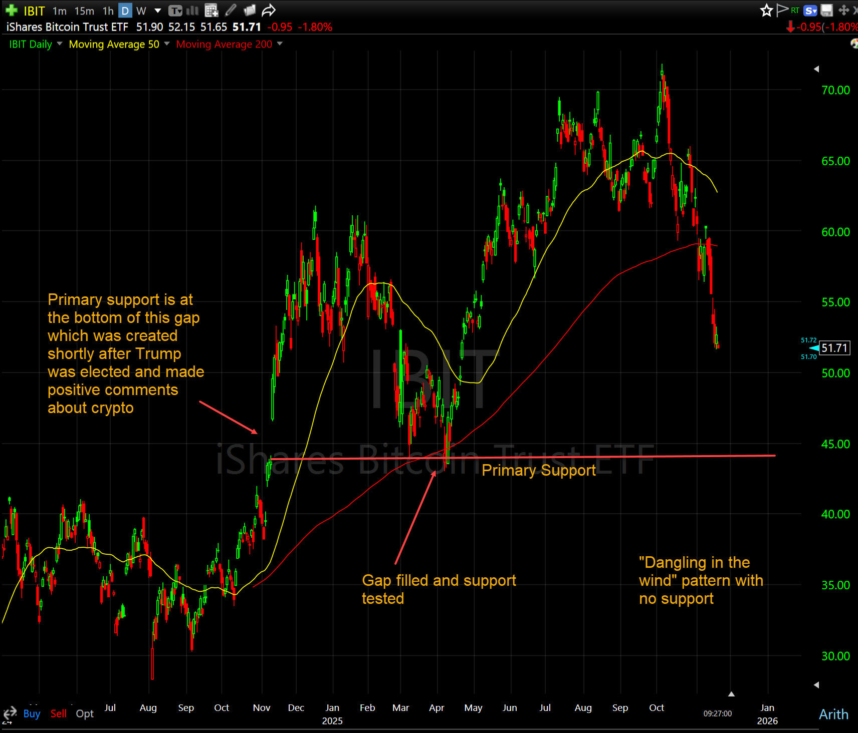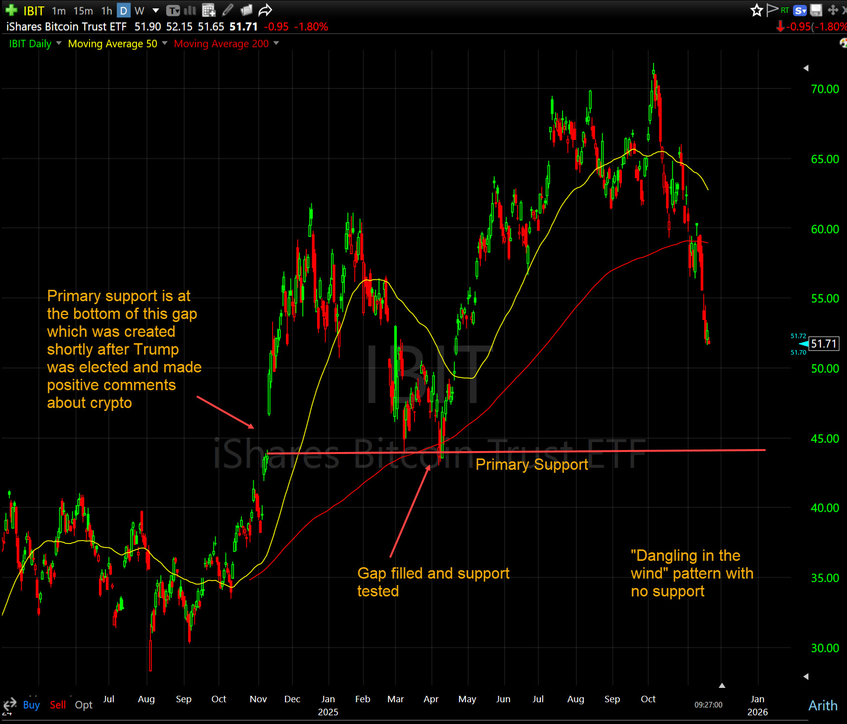 I'm holding a longer-term position in IBIT as well as in some Ethereum-related plays, but I have no interest in adding to them at this time. I want to see some support from, and I don't see any right now.