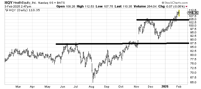Health Equity HQY hasn’t done a thing wrong. It met its initial upside target and has a next one around 120. A pullback to that 105 area would be a gift.