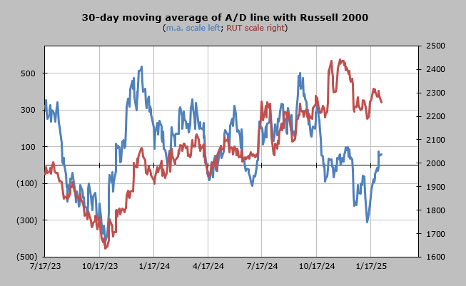 The 30-day moving average of the a/d line will be overbought midweek this week.