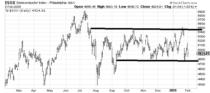 I would point out that the SOX didn’t come close to last week’s low, so it continues to stay in that range that has been with us for months now, well before the election.