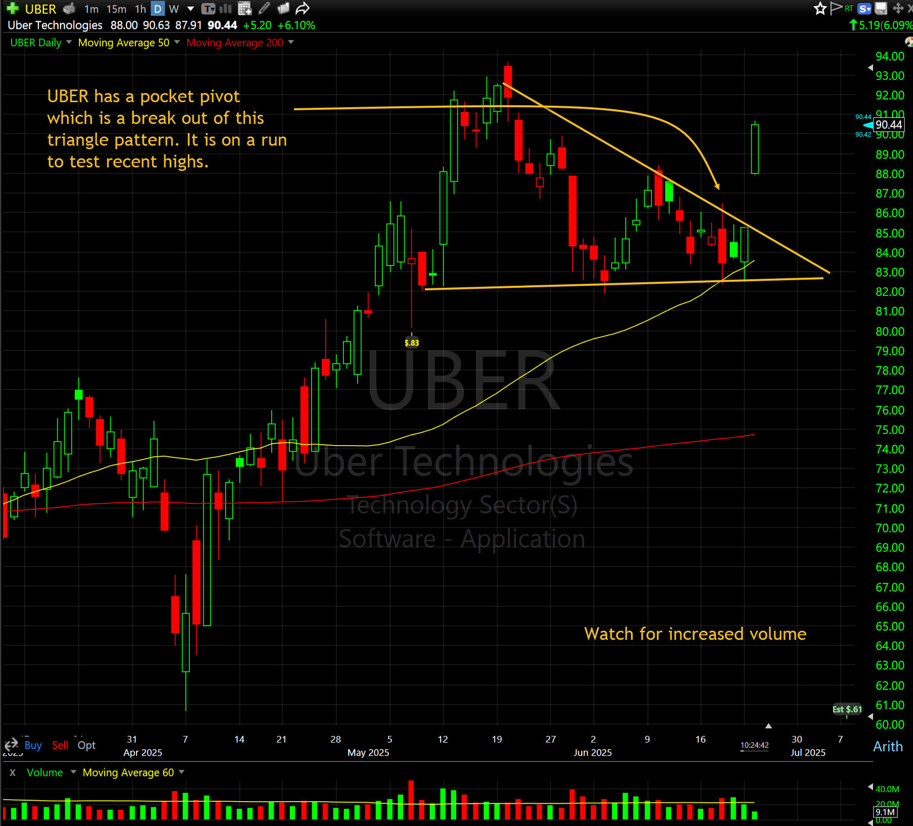 I've been looking hard for some new buys and decided to add to my position in Uber UBER. Uber announced that starting on June 24, a limited number of Waymo autonomous vehicles will gradually become available on the Uber app for riders in select areas of Atlanta, Georgia.