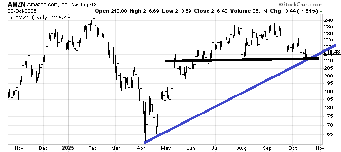 The question is if I can see Amazon (AMZN) improving the way I see Meta improving. I can. In fact, the risk/reward is quite good here because as long as it stays over $210-ish the risk is manageable. I mean the chart looks very toppy, but if it holds, then it will look like it this was a giant digestion period.