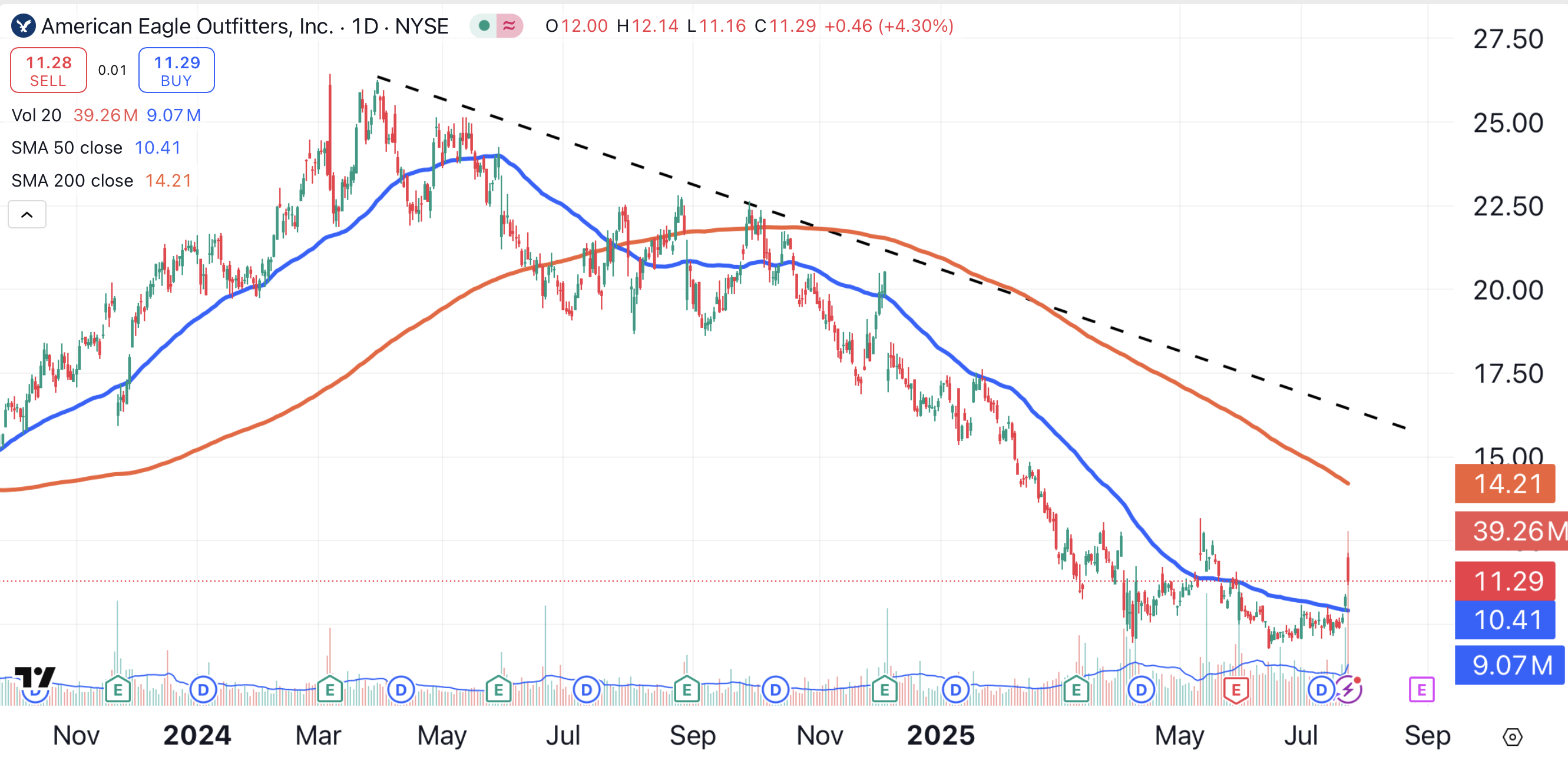 Thursday’s intraday price action was telling. While the stock was up on heavy volume, shares of AEO opened near their high, and closed near their low of the day.