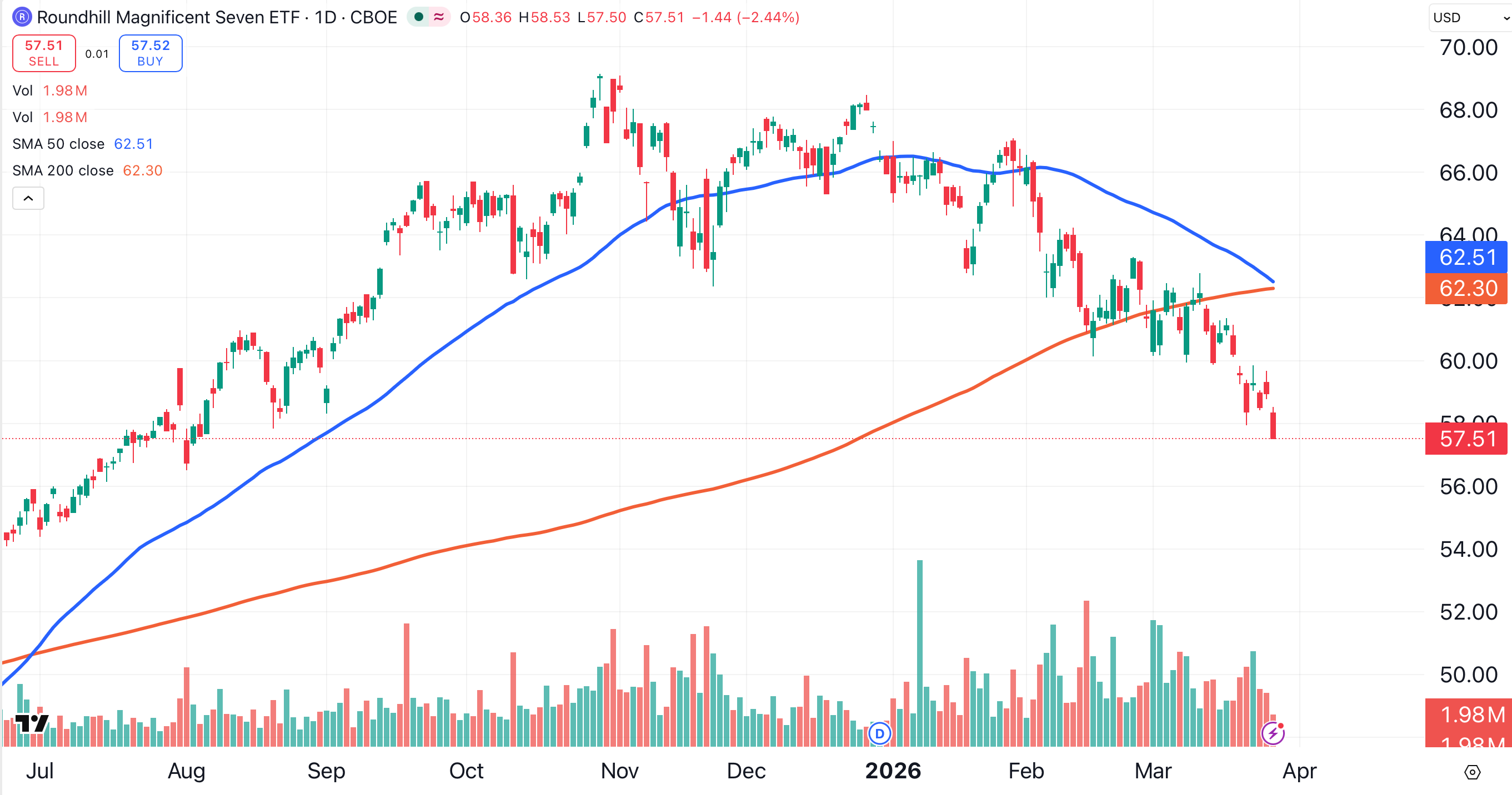 You’re looking at a chart of the Roundhill Magnificent 7 ETF (MAGS) .