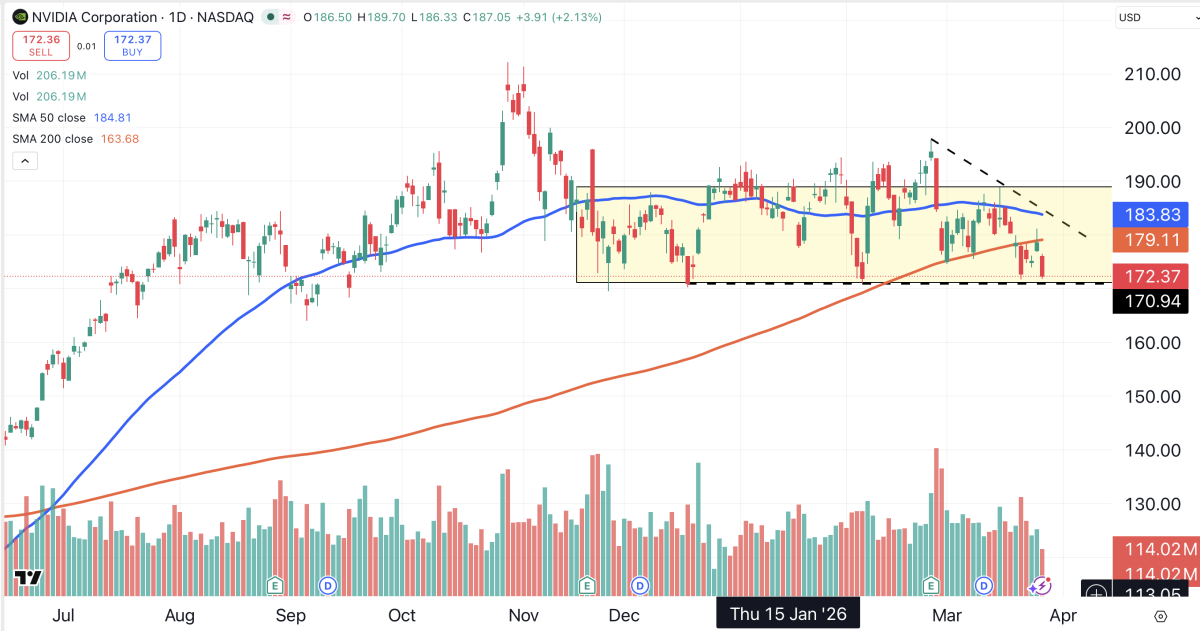 As long as Nvidia remains above $170, shareholders can relax. If it falls below that level, this $4.1 trillion mammoth could generate additional selling, pulling the indexes lower.