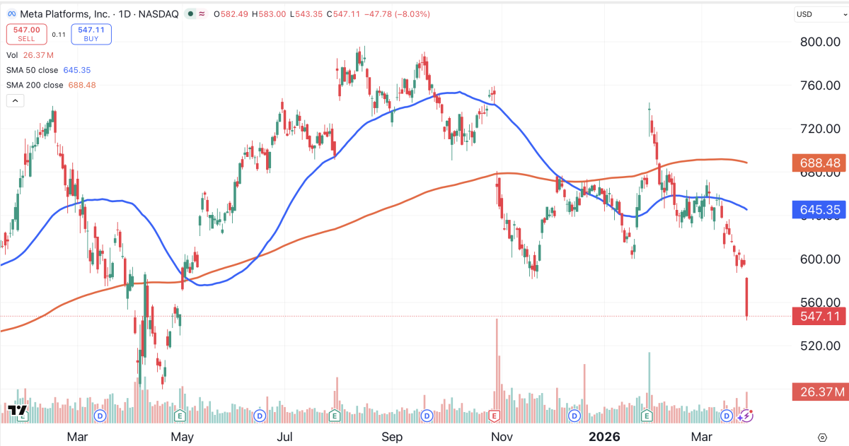 After losing a landmark court case, Meta Platforms (META) dropped 8% on Thursday to reach its lowest level in nearly a year. Meta is trading well below its 50- and 200-day moving averages.