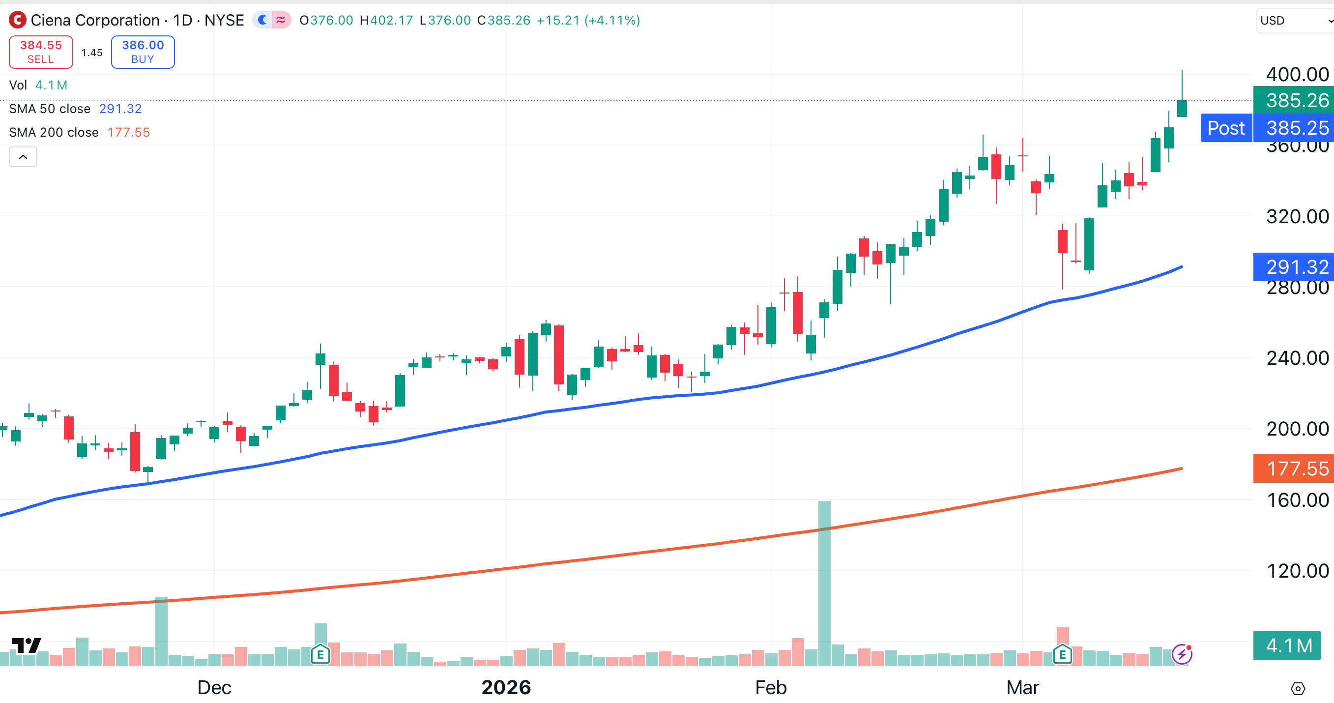 Earlier this month, Ciena crushed estimates by earning $1.35 per share for the quarter ended in January. Analysts were looking for just $1.16 per share.