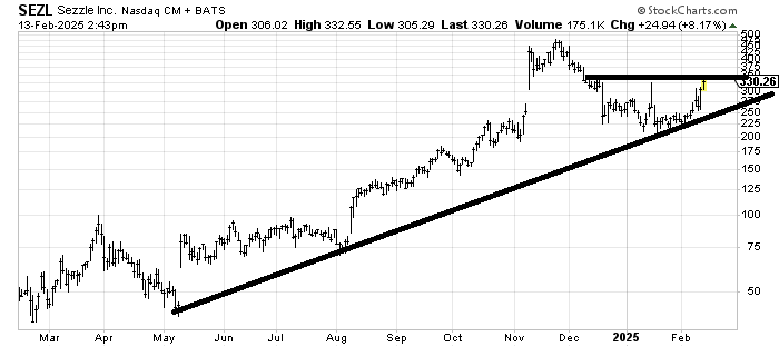 Sezzle (SEZL) is an interesting chart because it has corrected and then scooped under. The only issue is that it has some short-term resistance here. Would like to see it chop some more and then breakout. Please be aware this is a very small-cap stock so it trades thinly.