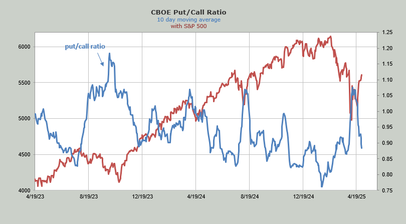 The ten-day moving average of the put/call ratio is discussed above.