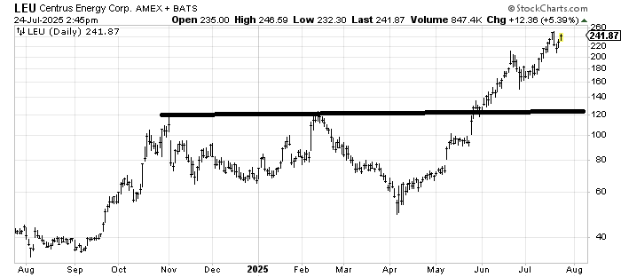 Centrus Energy LEU has a next measured target right here in the $240-250 area.