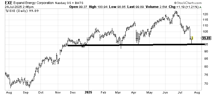 In any other market I would say Expand Energy (EXE) looks like a top and that a rally to $105-110 would be a great place to sell it. In this market the $95 area is probably where you buy it with a stop under there.