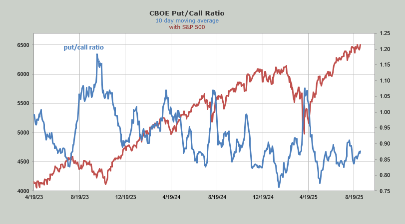 The ten-day moving average of the put/call ratio is still rising.