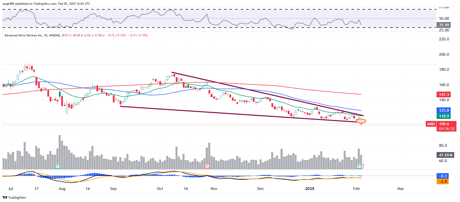 Do I plan to re-enter at some point? Of course, but I will have to see something constructive first from a technical perspective. CEO Lisa Su and her balance sheet are too good at her job to stay down forever.