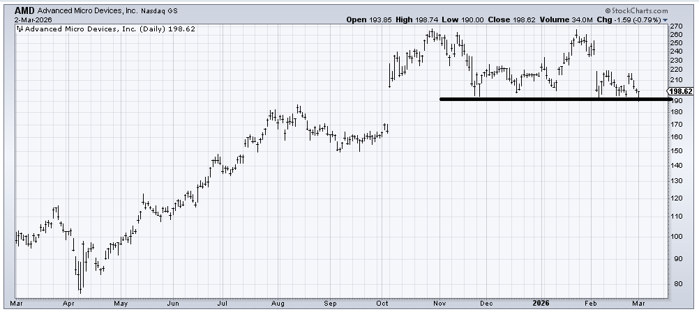 Finally, here’s the line on Advanced Micro Devices (AMD) . 190 has held about six times since November.