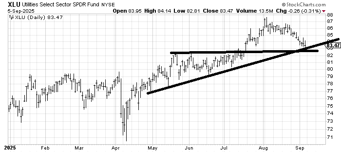 As noted above, the Utes are down five percent in the last five weeks. It’s probably why no one recommends them anymore! This 82-ish area is where I expect they will start to find support over the next few weeks. I think I am early; it will take some fits and starts for it to find footing.