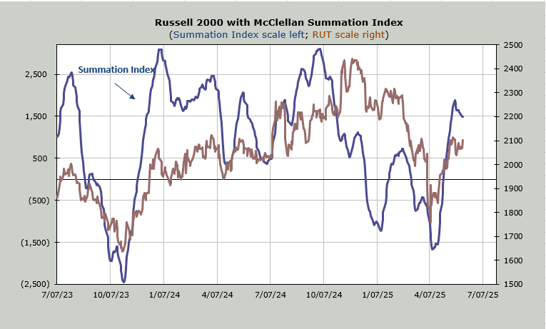 The breadth was good, but not enough to get the McClellan Summation Index to turn upward. That is another day of positive breadth that is needed to do that. The chart is below.