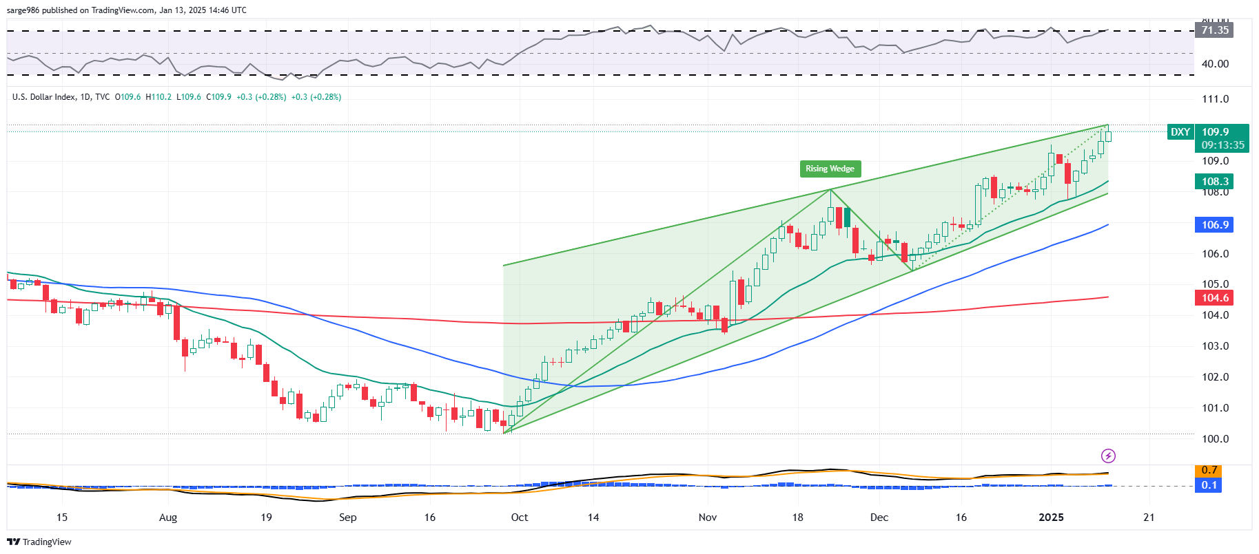 Readers will note that the U.S. dollar index has been stuck in a fairly powerful rising wedge pattern. This is also a pattern of bearish reversal, but this wedge does not look like its about to narrow and close. That said, should President Elect Trump choose a weaker U.S. dollar as a policy goal, while that could inflame consumer level inflation, it would also be a turning point... for Bitcoin.