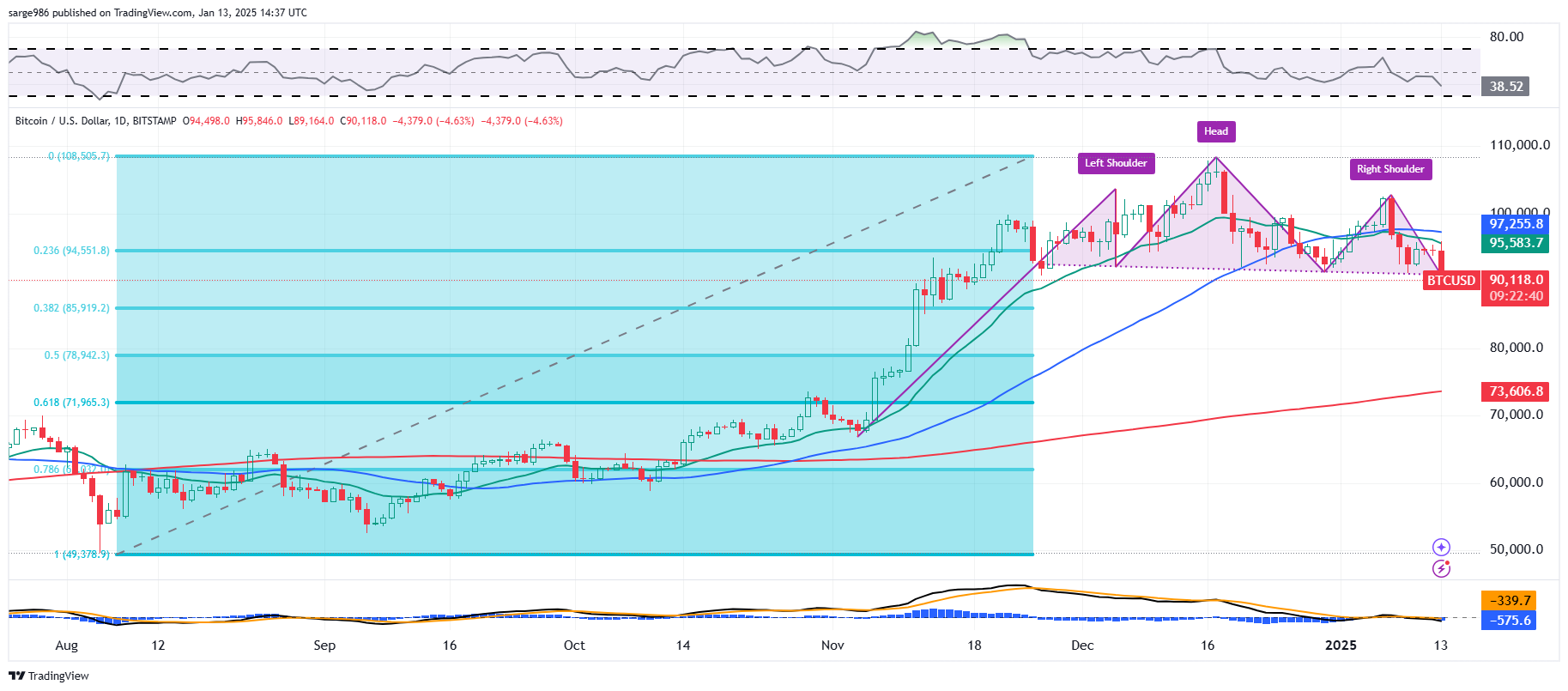 Coincidentally, readers will see that a 38.2% Fibonacci retracement of Bitcoin's run from early August to the December high would be a rough $85,900. Should that spot not show up and catch Bitcoin on this weakness, the "half-way back" point or 50% retracement level stands at $78,900, which is close to my hastily put together downside target.