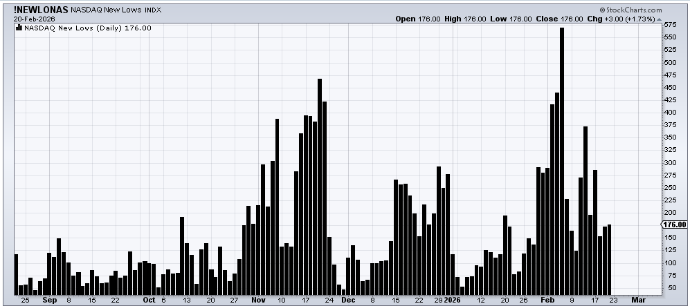 The new highs have fallen off quite a bit, but Nasdaq’s new highs have also tailed off. I would still love to see another push down to see if we can get fewer new lows again.