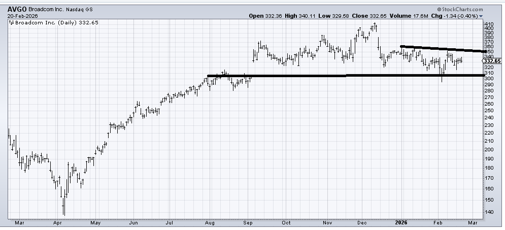 One thing to watch very closely, especially as NVDA reports earnings later this week, is that it hasn’t made a higher high since December, which is why if it comes down into that 300 area this time, I would not like it.