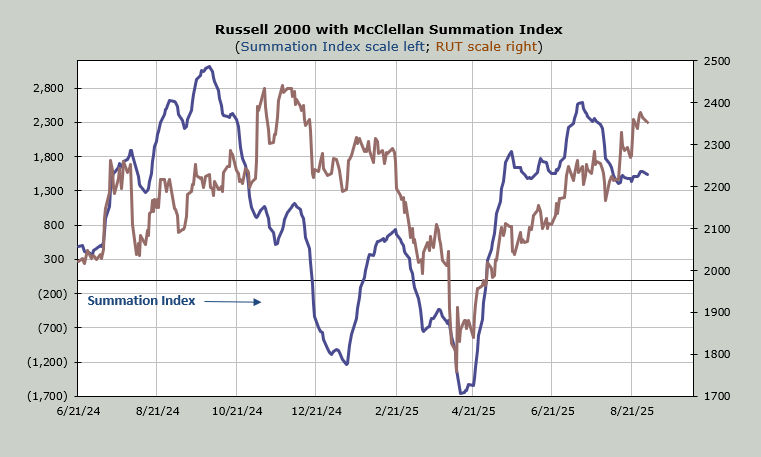 The McClellan Summation Index is still milling about. It still needs a net differential of +1,100 advancers minus decliners on the NYSE to stop the downward slant and more to turn it up with any conviction.