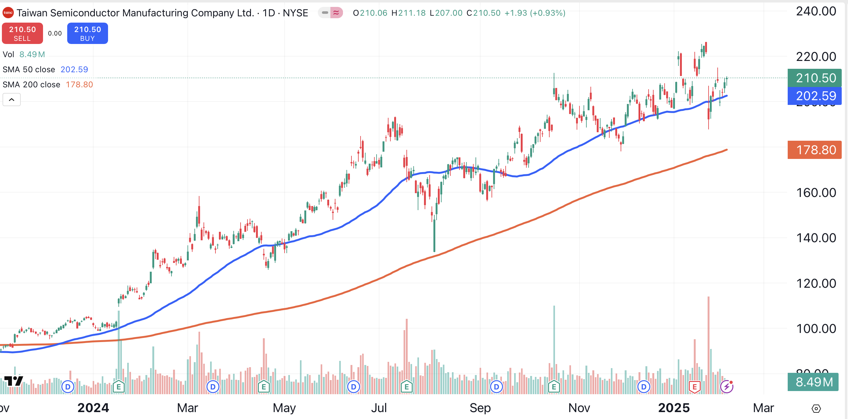 While Broadcom is my top pick in this sector, Taiwan Semiconductor TSM also has an impressive chart.