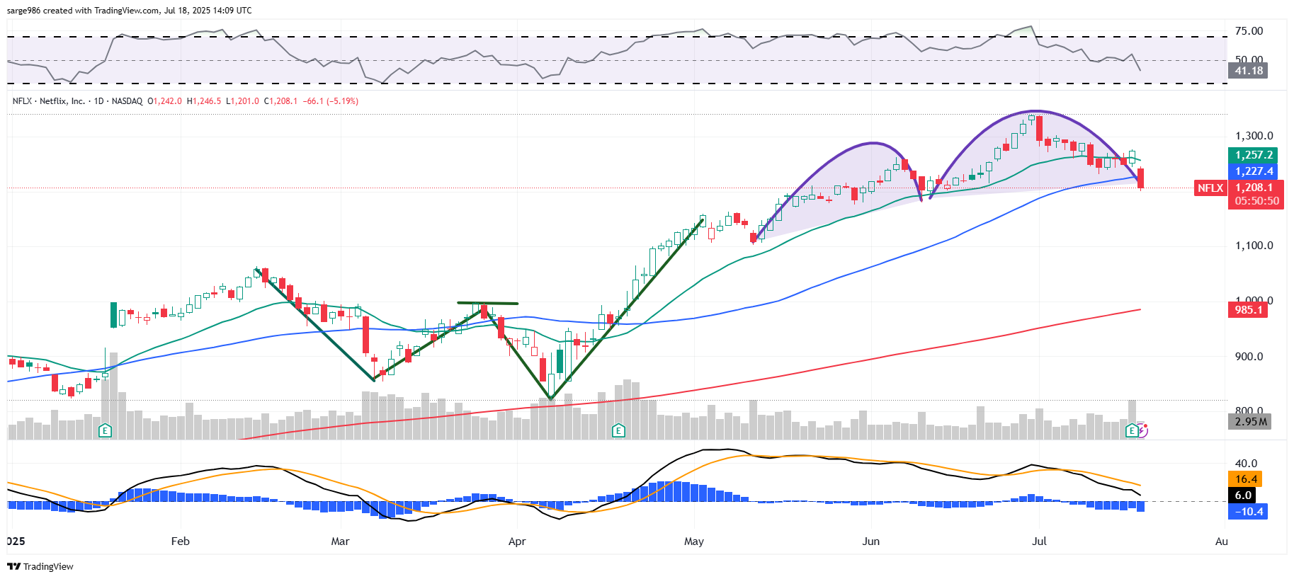 It is apparent that the markets are not impressed in these Netflix earnings nor in the guidance. The opening bell rang half an hour ago and I saw the stock is now down 5.6%. Cash flows are strong. Revenue growth is strong. Margin is strong. The ad business is growing. The guidance is strong. I think I would want to take advantage of this weakness, if the stock were not still trading at 50-times forward looking earnings. Let's take a look at the chart. ​