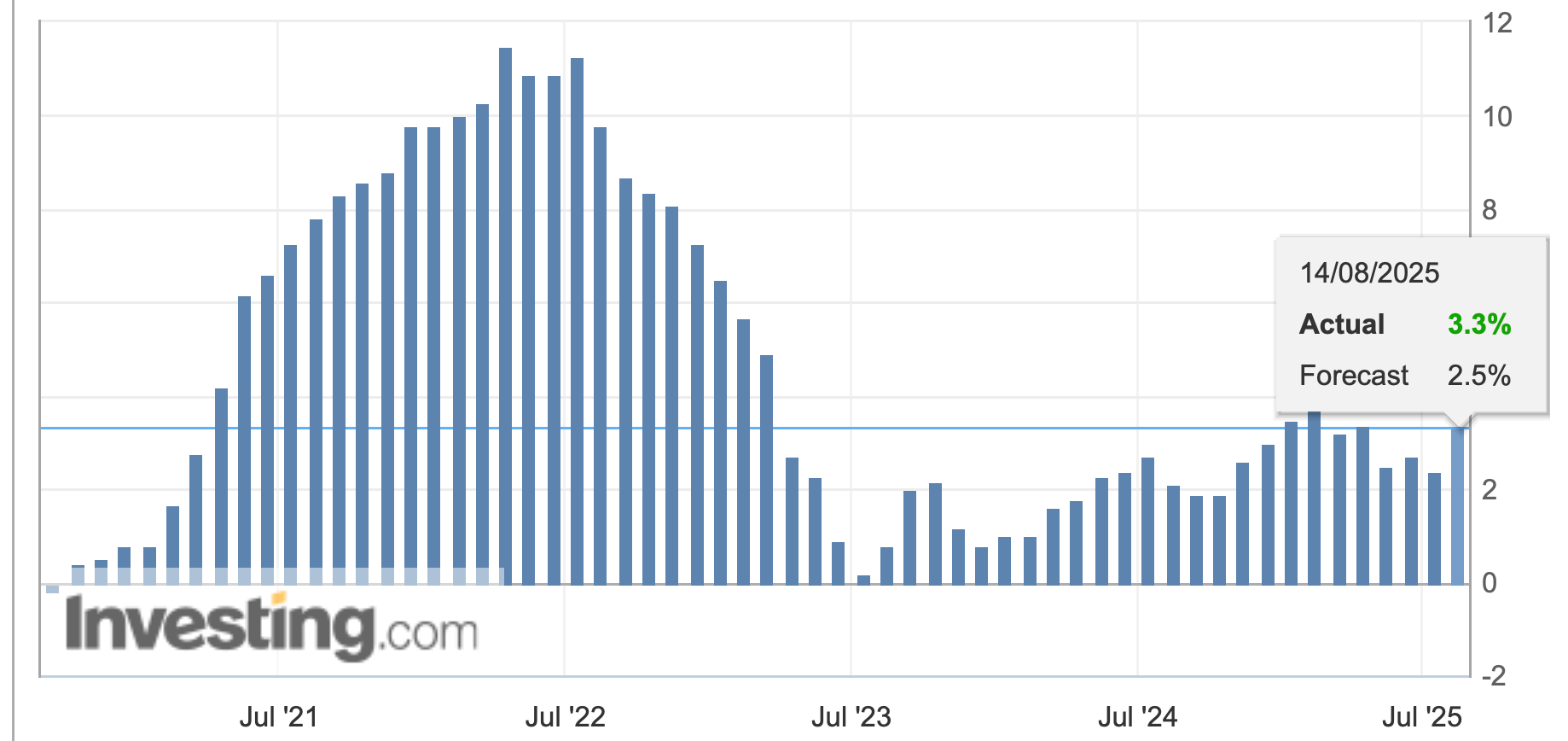 Has a surge of inflation already begun? The July Producer Price index came in shockingly high last week. The annual rate of inflation at the producer level soared to 3.3%, well above analysts’ expectations for a modest 2.5% increase.