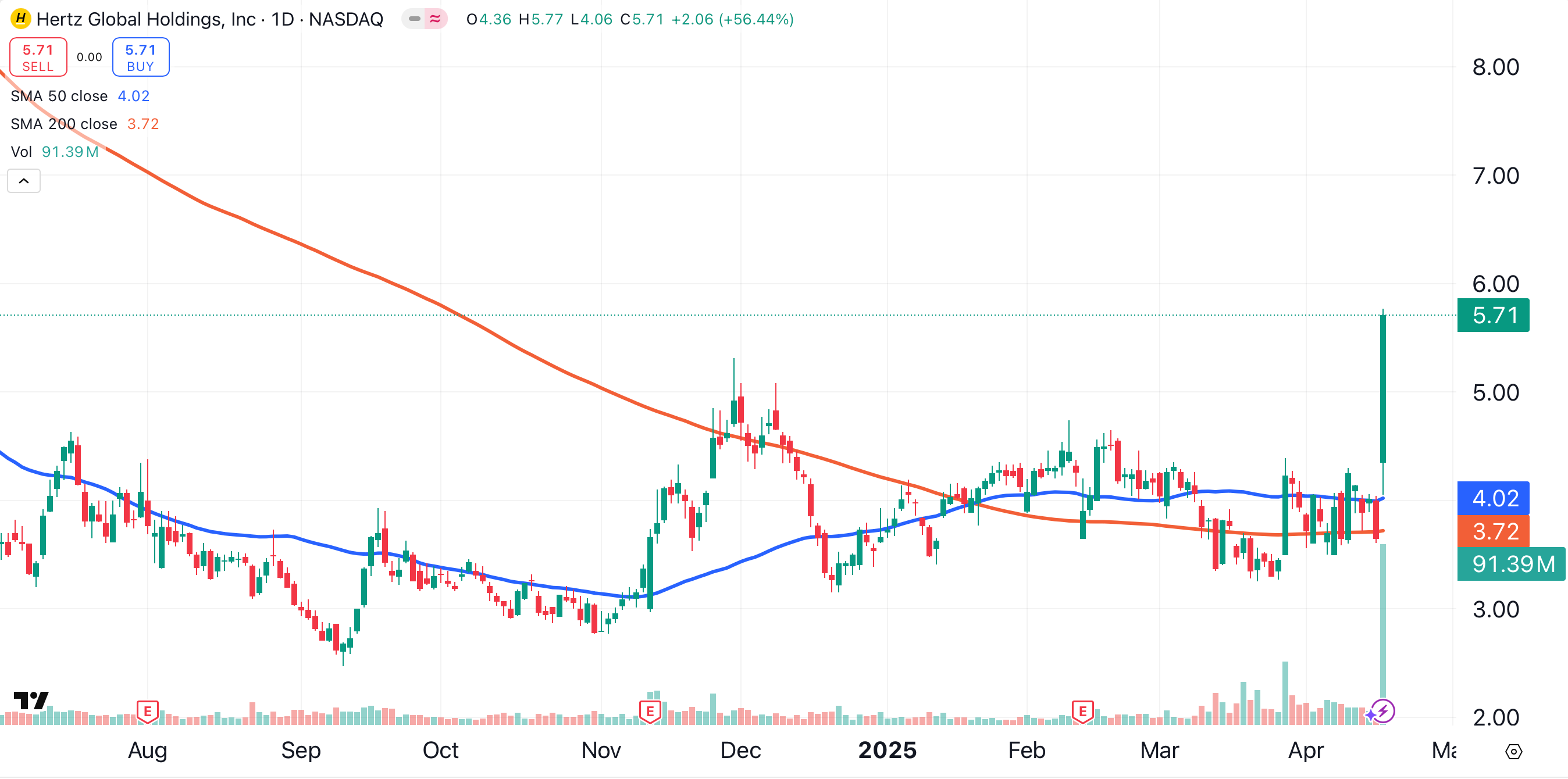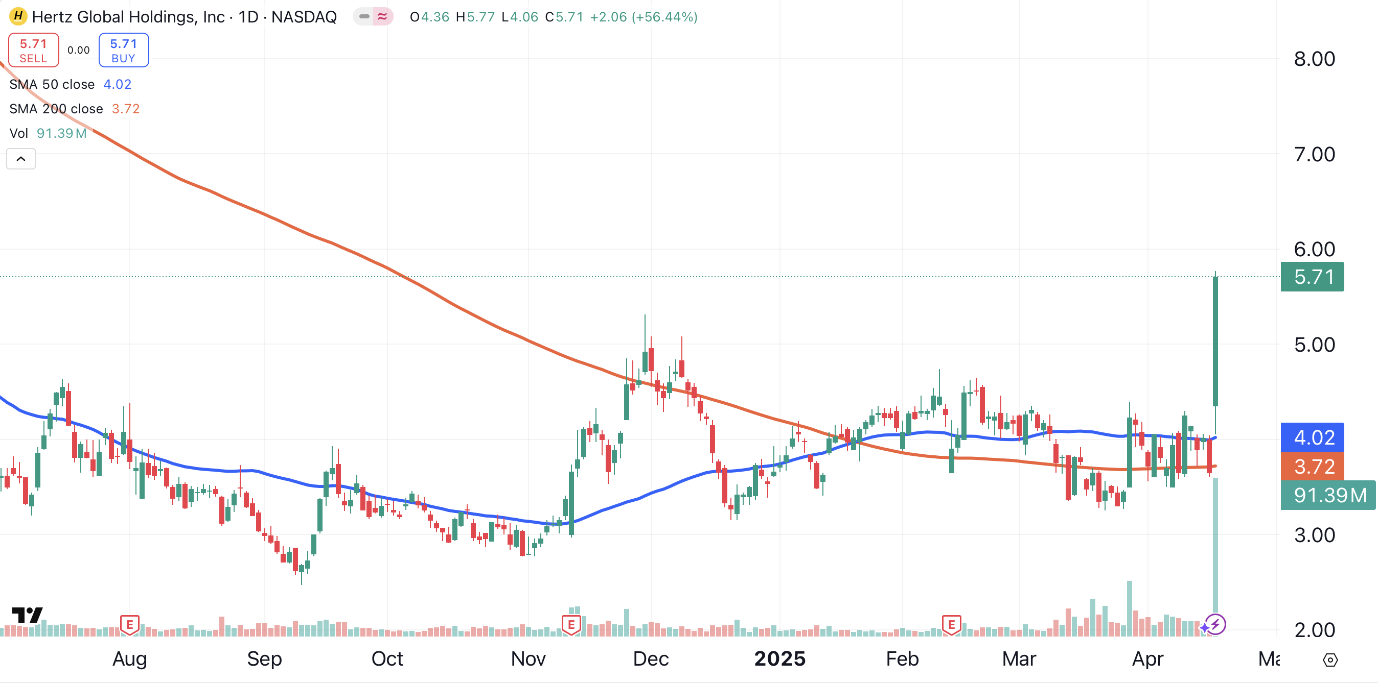On Wednesday, Hertz closed at its highest level since October of 2023.