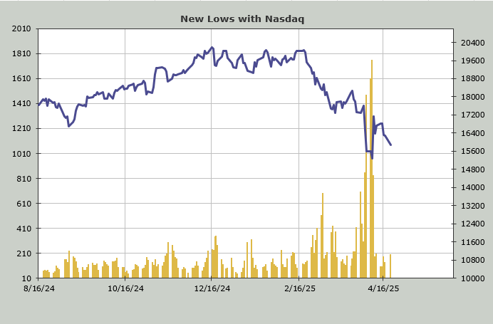 But the point is, on April 9th we saw Nasdaq with 1757 new lows. Today, that number was 198. Is it possible that if Nasdaq slid another 600 points, Nasdaq would see more than 1757 new lows? It is. Is it likely? I don’t think so.