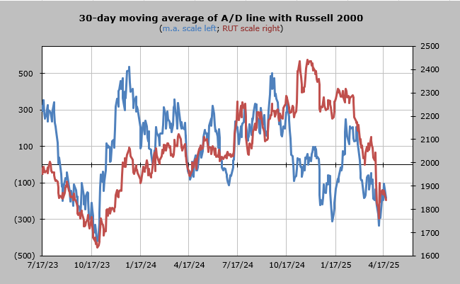 The 30-day moving average of the advance/decline line is not really oversold. It should ‘rally’ for another day or so and then come right back down.