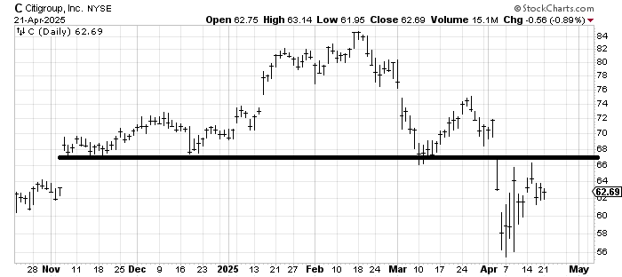 As the weeks go on, I am hoping we see some charts begin to differentiate themselves. I don’t love the chart of Citigroup C (look at all that resistance overhead), but I also need to acknowledge that there was no selling in the stock today. So when we talk about stocks making new lows, we want to see more of this over time.