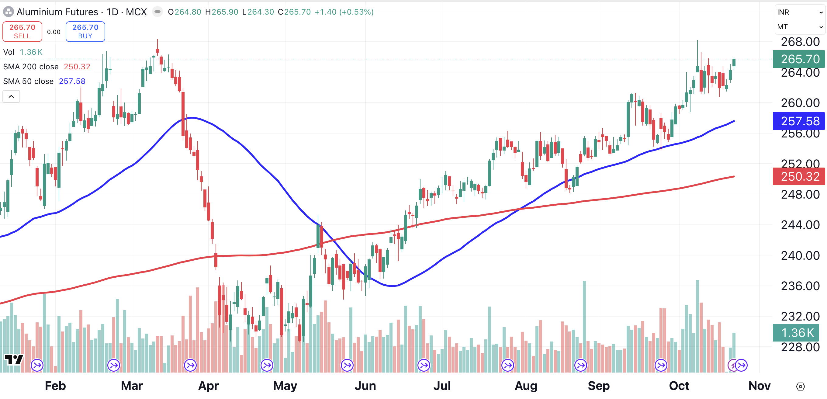 Alcoa’s chart has a similar look. While the stock has underperformed the broader market, gaining just 5.6% year to date, Alcoa shares have climbed a whopping 27.3% over the past month.