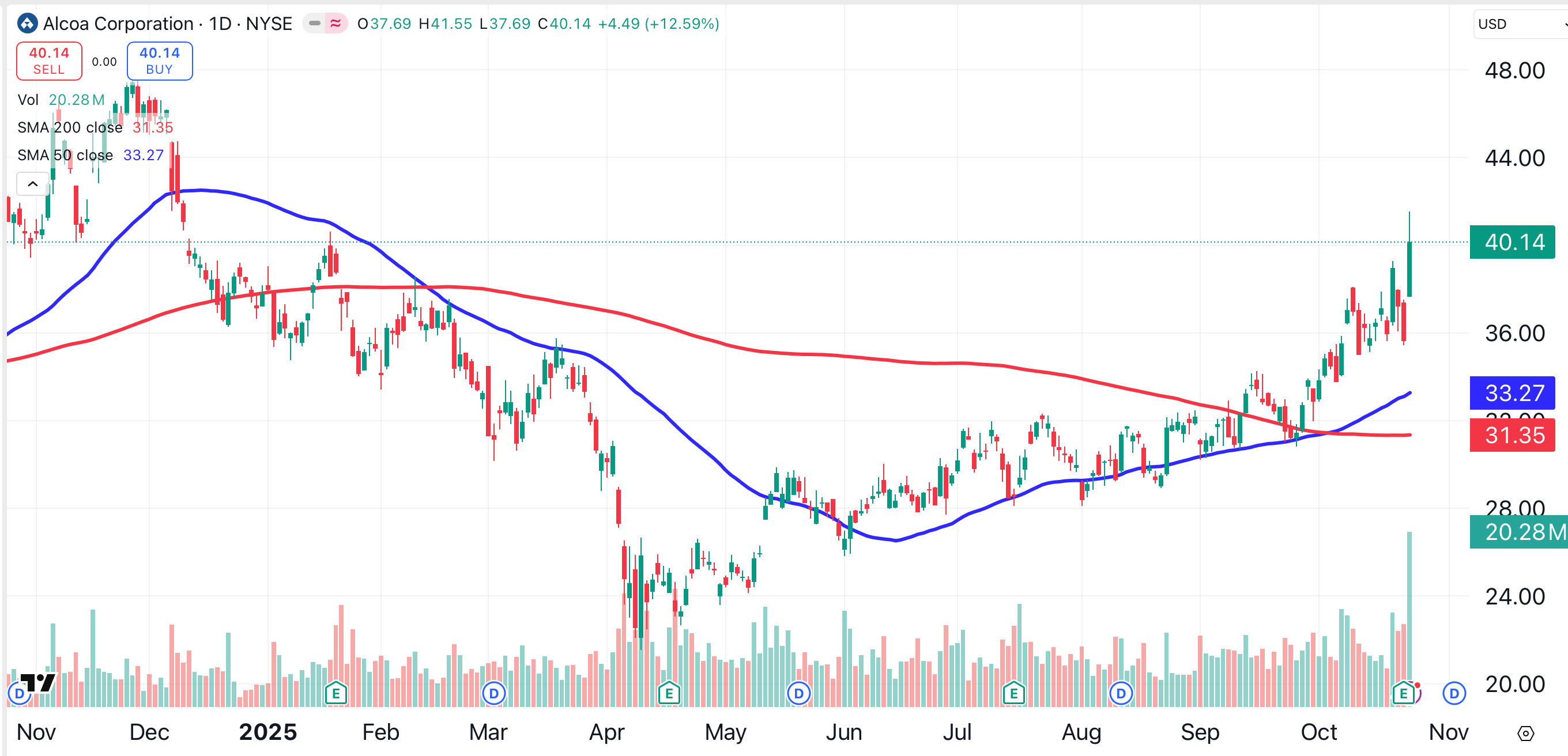 Perhaps investors are looking beyond Alcoa’s current earnings and revenue, and factoring in the stock’s potential as a tertiary AI play.