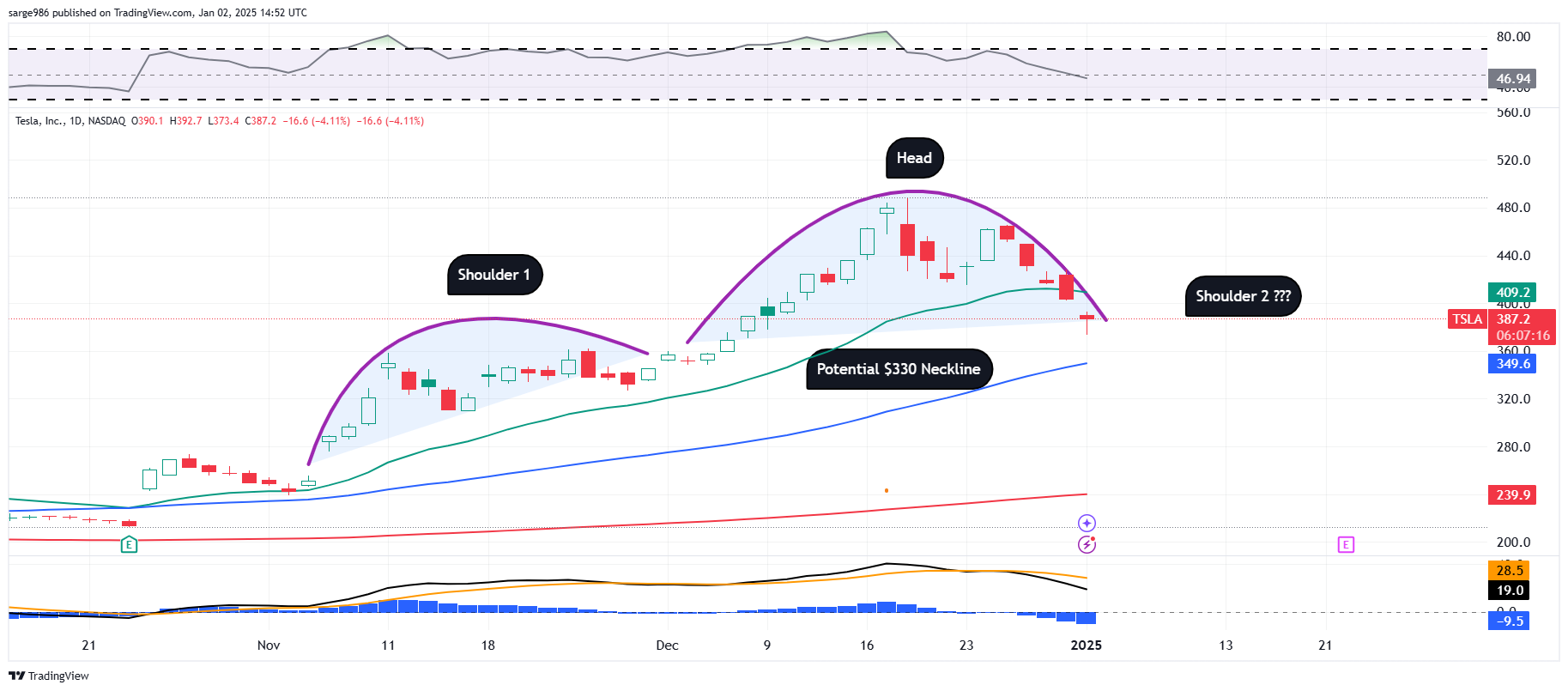 Or am I looking at a yet to be completed head-and-shoulders pattern with a potential $330 neckline? That would be much, much worse for the stock.