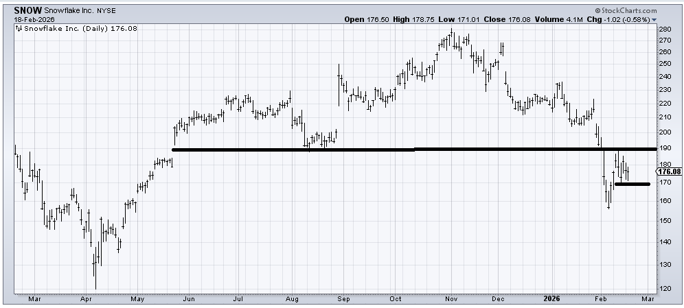 Someone asked me recently if I thought Snowflake (SNOW) could rally back to the 190 area. As long as it doesn’t break 170, I’d give it a chance to do so.