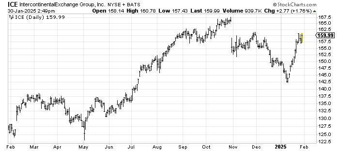 I expect Intercontinental Exchange ICE will fill that gap overhead but know that earnings are due out next week and earnings can be a gamble with big gaps, up and down so you should prefer it does so before earnings.