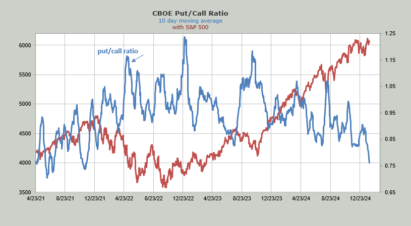 The bad news is that the put/call ratio was .70 today. That means the ten-day moving average of the put/call ratio is now at .76, closing in fast on that low from November 2021 when it was .74.
