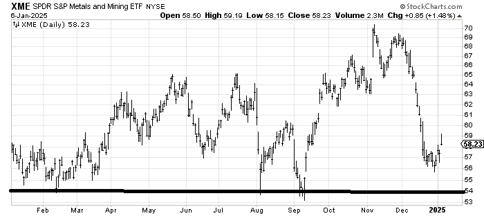 Let’s go back to the chart of XME that I liked yesterday. It popped on the open but closed near the low of the day. Yet, look at all that support below. It is my belief that if we do come down this chart is not going to break down under the mid 50s but rather offer us a trade to the upside.