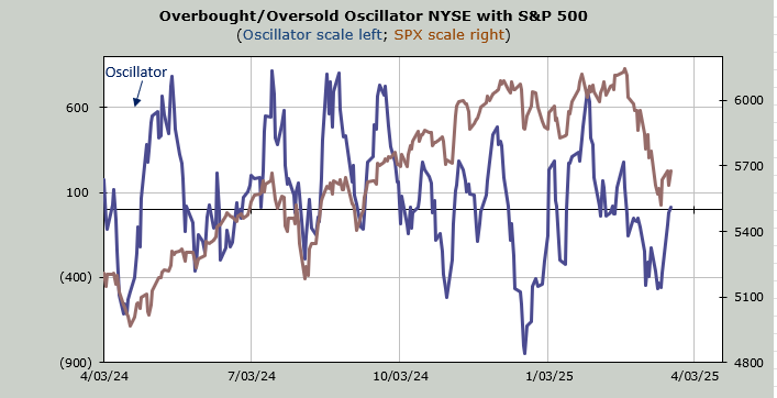 Did the indicators change? Not much. I hate to keep saying that, but it’s true. The Overbought/Oversold Oscillator is still just below the zero line; today barely moved it. It is not yet overbought.