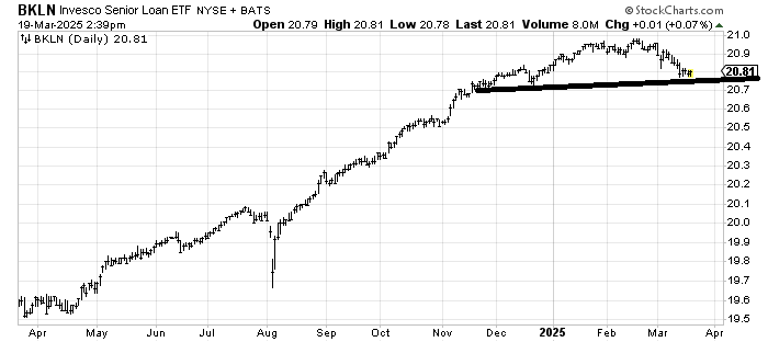 BKLN an ETF for loans hasn’t broken yet. If it breaks this line, I would guess it’s a problem.