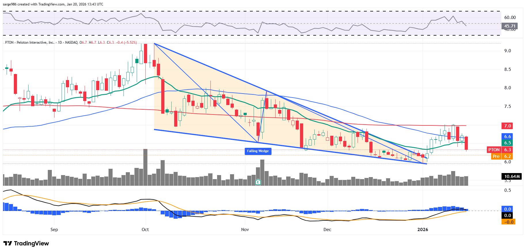 That said, back in late December, I pointed out to readers that the stock had developed a falling wedge pattern of bullish reversal and could soon thereafter enjoy an increase in price. PTON did break out of that pattern, but that breakout is now failing.