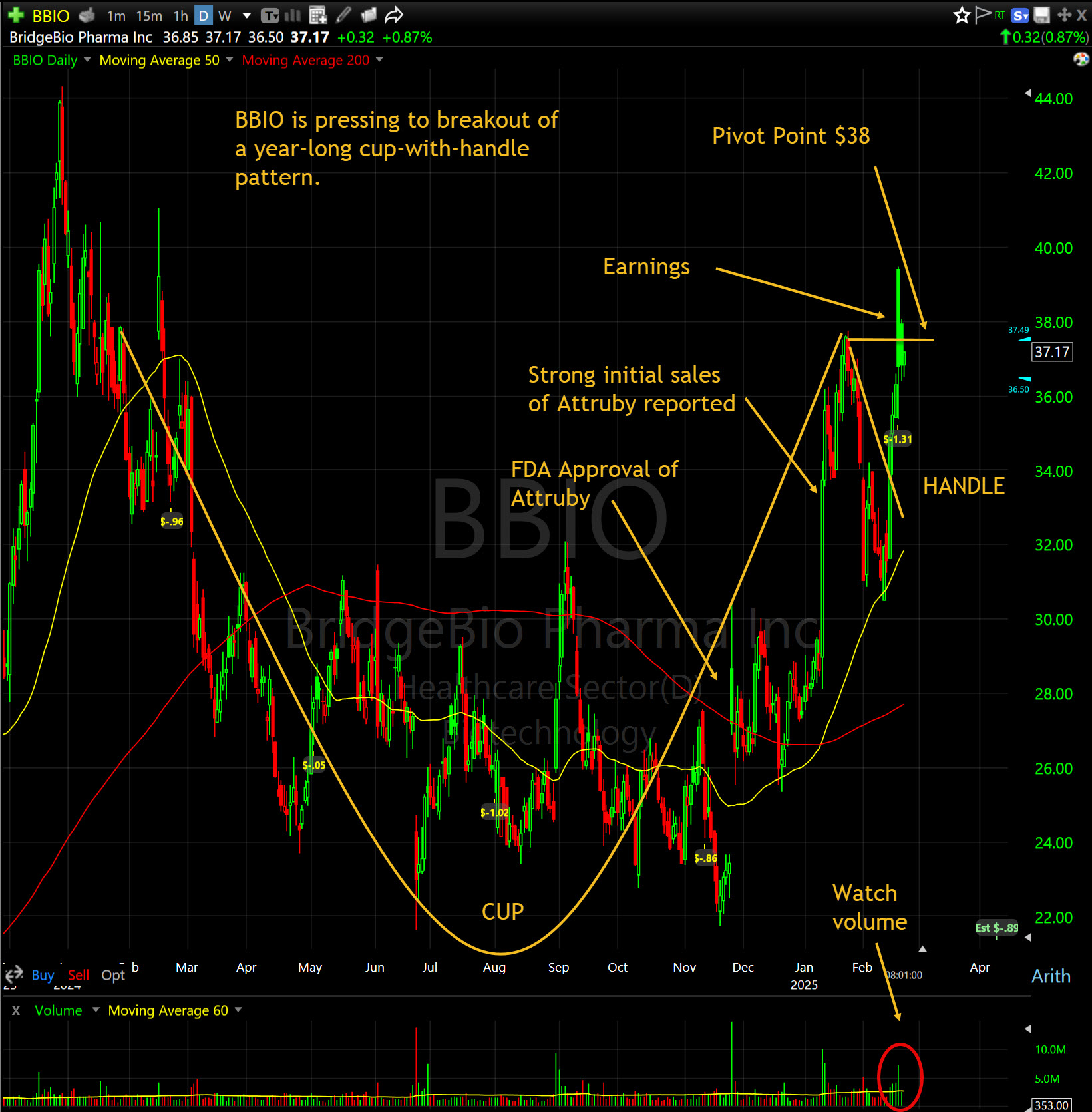 I've added to Xeris Biopharma XERS, which is a favorite, and one name I particularly like is BridgeBio Pharma BBIO. It has had very good news flow lately and is consolidating around $36-37.