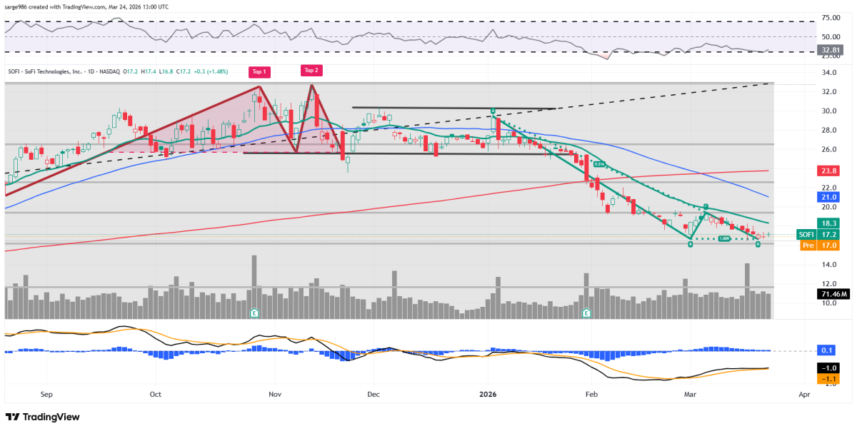 In what will probably surprise absolutely nobody, my opening trade of the new "$10,000 Portfolio" will be a purchase of 100 shares of SoFi Technologies (SOFI) at or close to the last sale of $16.95, where it was trading ahead of the opening bell.