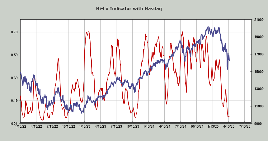 The Hi-Lo Indicator has not budged. That is rare, as usually it turns up when prices do. It remains oversold.