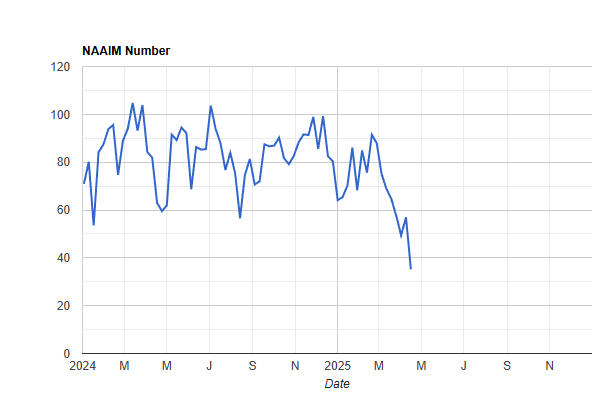 Away from that, the NAAIM Exposure number is now down to 35. I have wondered when it would fall, and it has. Of course, if we rally this week, it will probably tick up, but this was one of the hold-outs on the sentiment front, and now they have given up, or are giving up.