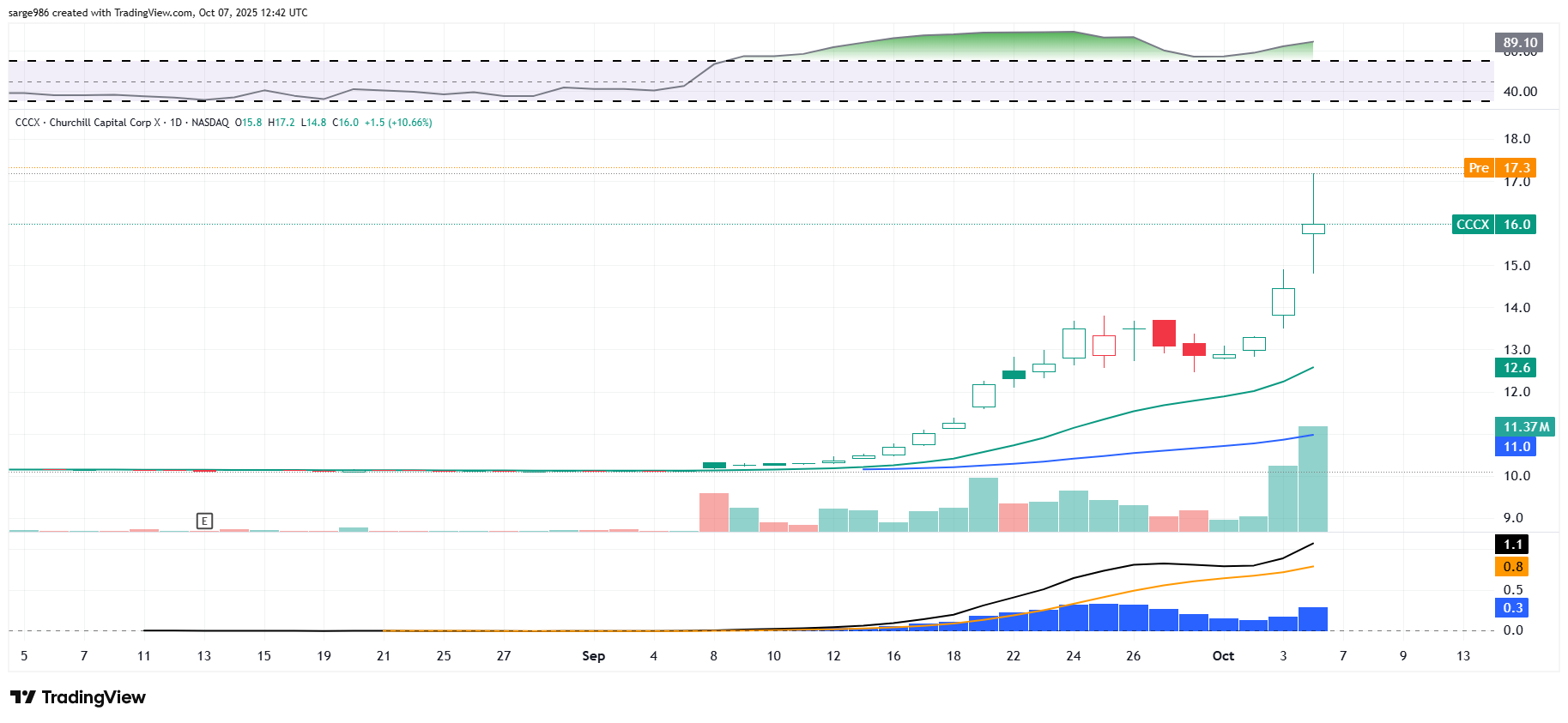 I did not expect the stock to take off as quickly over the past few days as it has and perhaps this is just a spike. Perhaps a "next opportunity" to enter will arise as profit taking sets in. Citron Research of Andrew Left fame, has been tweeting positively on the stock, or rather Infleqtion, which is the private company this blank check company is married to, for two days. Left sees this investment as a better investment idea in the quantum computing space than, say, a Rigetti (RGTI) . Just as a heads up, left has mentioned Rigetti as a short idea on more than one occasion.
