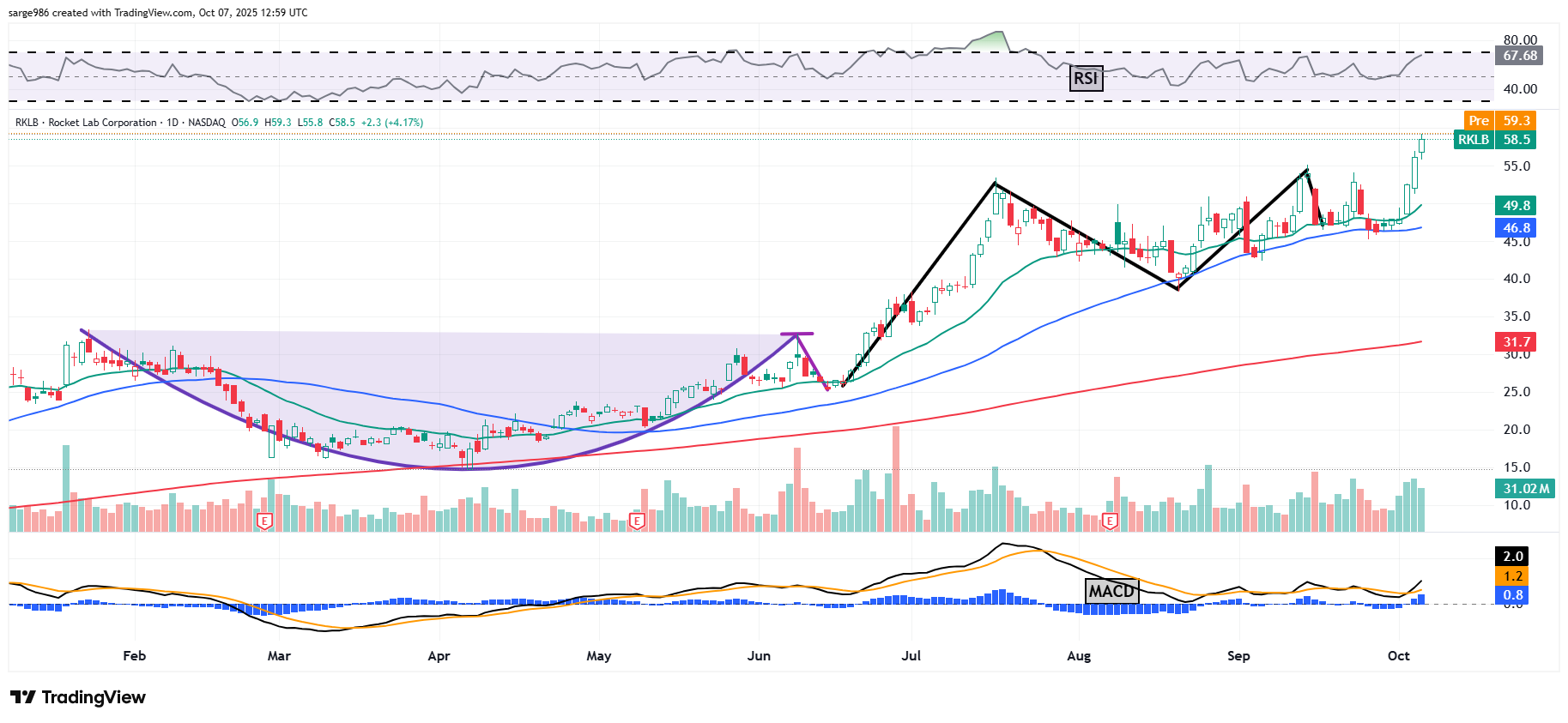 Rock Lab: First off, my $63 target price is still good for Rocket Lab (RKLB) . No need to update that just yet. But our technical picture has improved for the better. ​Let me show you what had me concerned about three weeks ago: